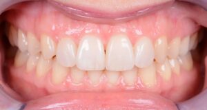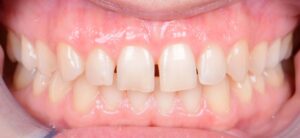 Bei dieser Patientin wurden die Lücken zwischen den Frontzähnen behutsam korrigiert. Vier