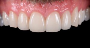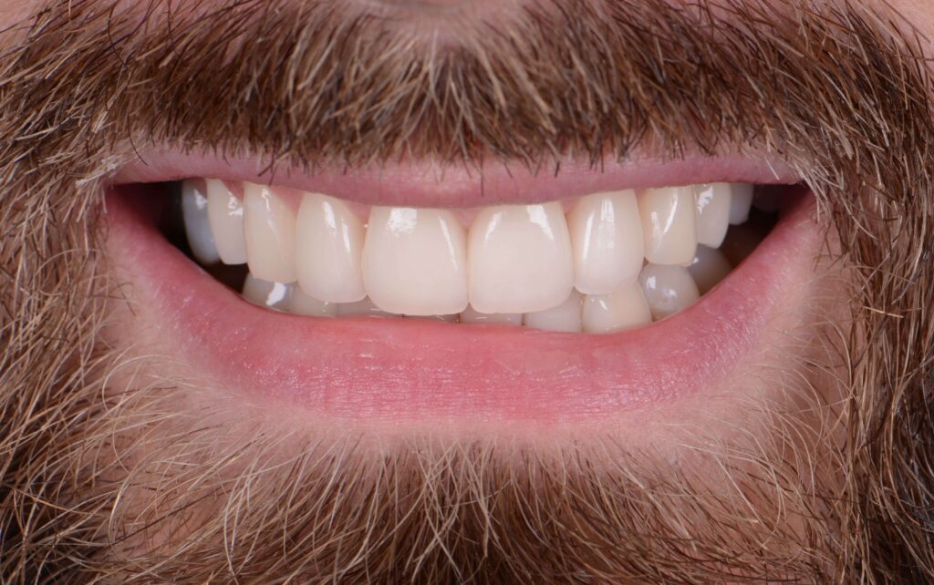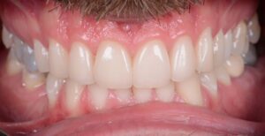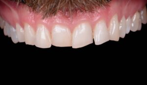Bei diesem Patienten wurden vier individuell gefertigte Veneers eingesetzt, um ungleichmäßige