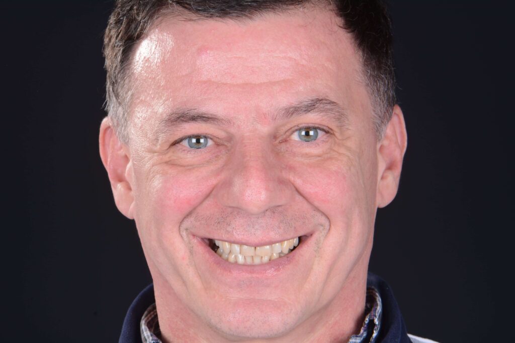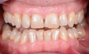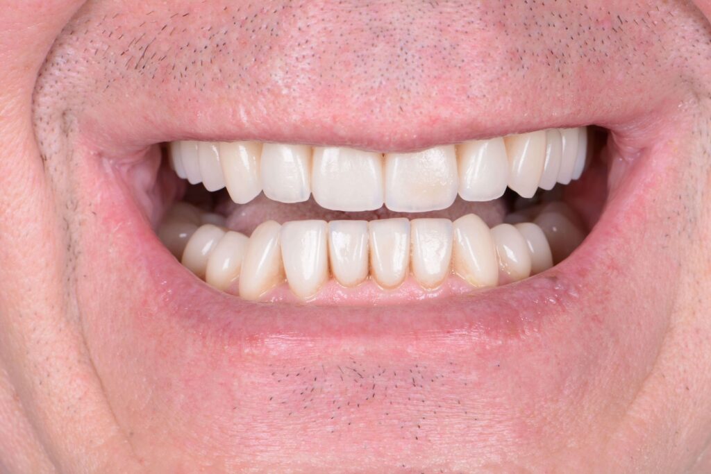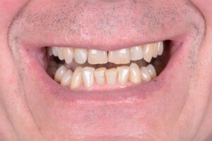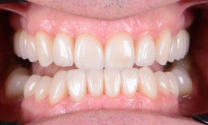 Bei diesem Patienten wurden die oberen und unteren Zähne mit individuell gefertigten Veneers