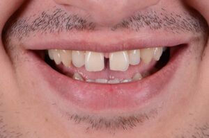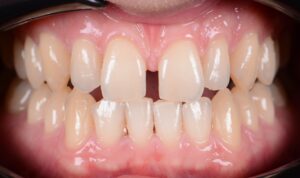 Manchmal genügt eine gezielte Veränderung, um die gesamte Ästhetik neu zu definieren. Bei diesem Patienten stand eine deutliche Lücke zwischen den oberen Frontzähnen im Fokus – eine feine Herausforderung, die wir mit vier individuell gefertigten Veneers gelöst haben.